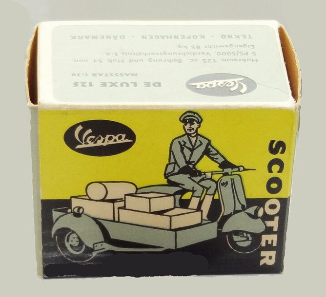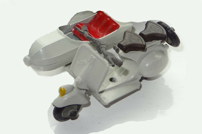 Techno Vespa Scooter with Sidecar, 2-7/16″ long, Die Cast, 1950’s