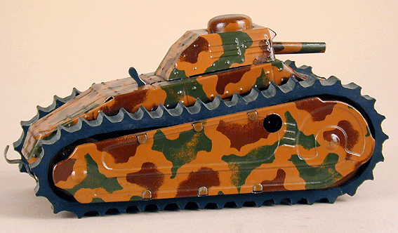 Tipp & Co. camouflage Tank, Clockwork, 8″ Long, Tin, 1930’s