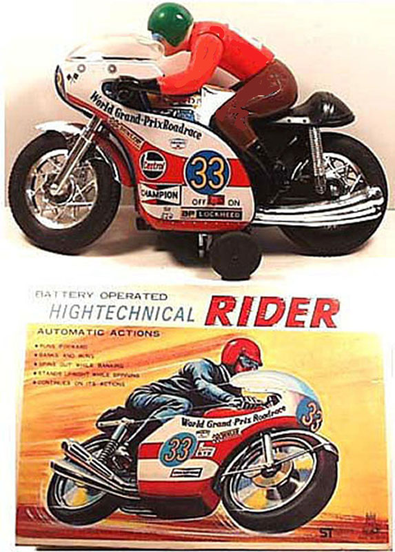 TPS Tokyo Plaything Shokai Tokyo Motorcycle Racer World Grand Prix, Battery Operated, 10″ long, Tin Litho.