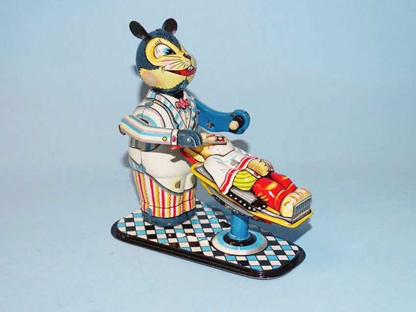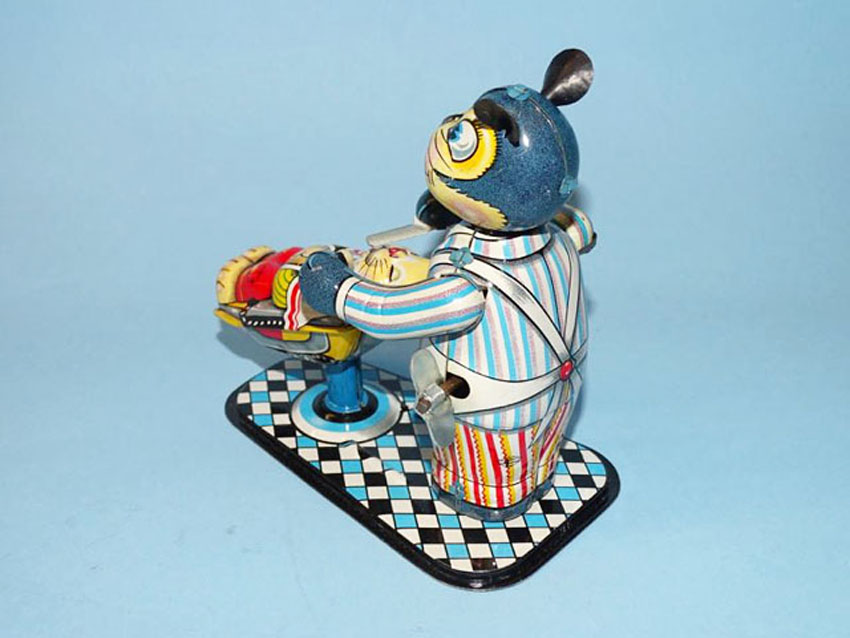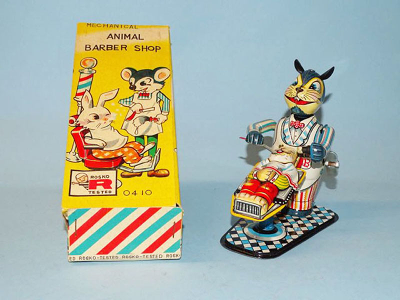 TPS Tokyo Plaything Shokai Animal Barber Shop, Windup, 5″ High, Tin