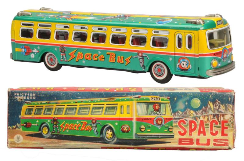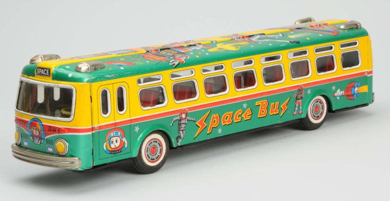 Usagiya Space Bus Toy, Friction, 14 1/2″ Long, Tin Litho., 1950’s