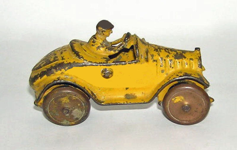 Walker & Stewart Yellow Racer, Cast Iron, 5 1/4″ long, 1920’s