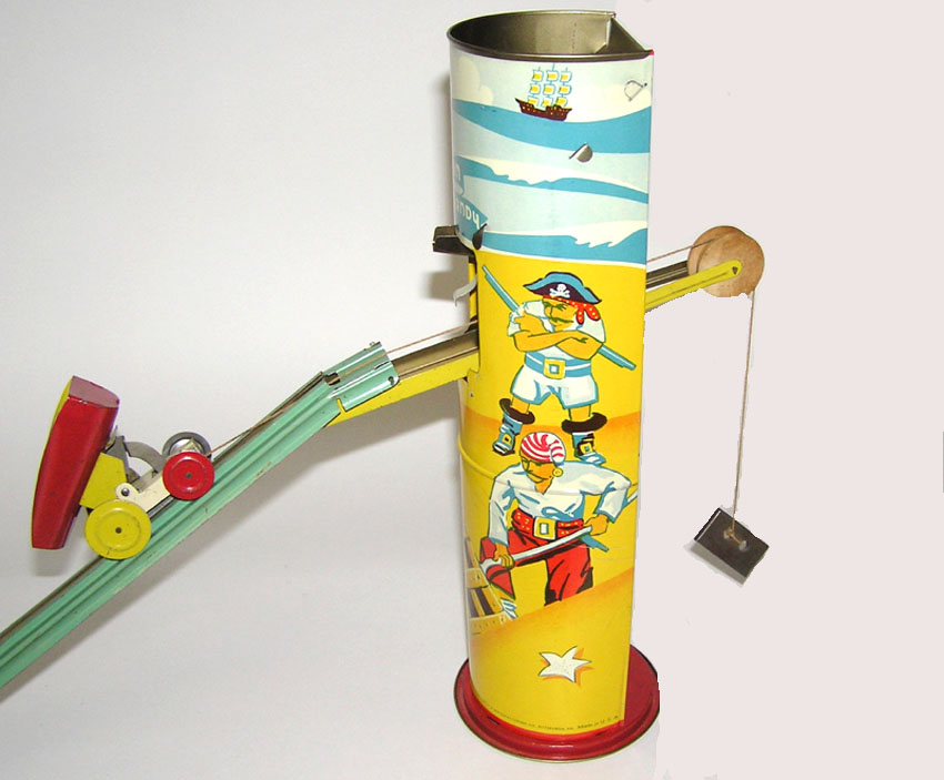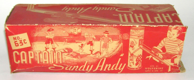 Wolverine Captain Sandy Andy No. 63, 14″ High x 5″ x 5″Tin Litho., 1930’s