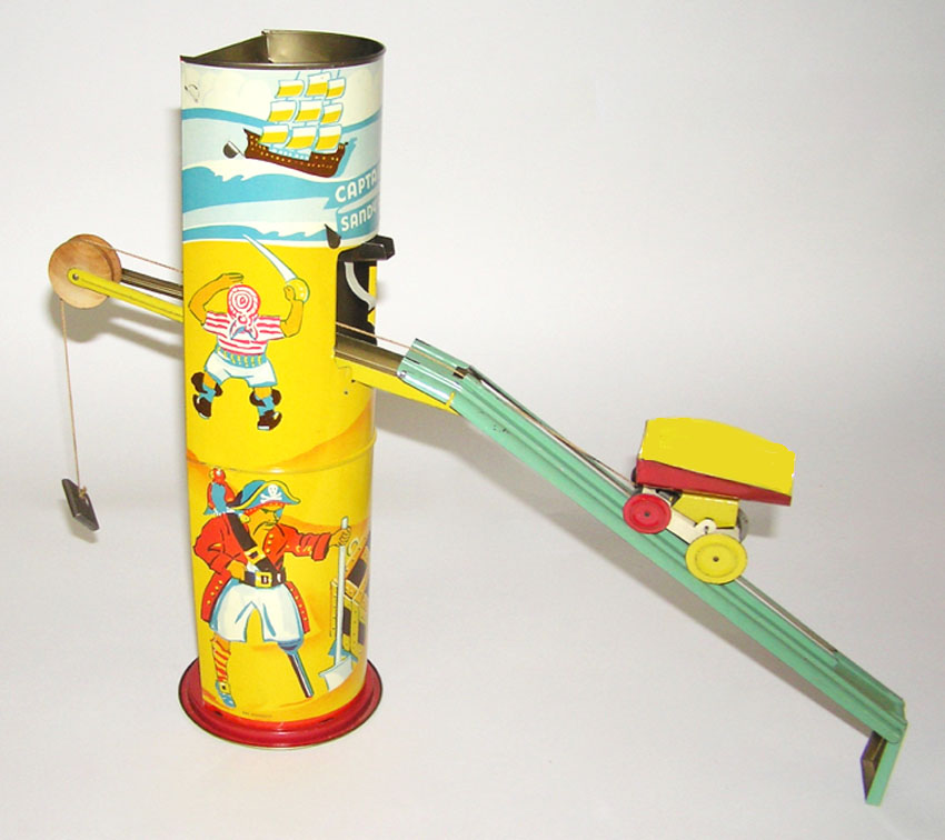 Manufacturer: Wolverine Year: 1930's Category: Sand toy Material: Tin Litho. Size: 14" High x 5" x 5"