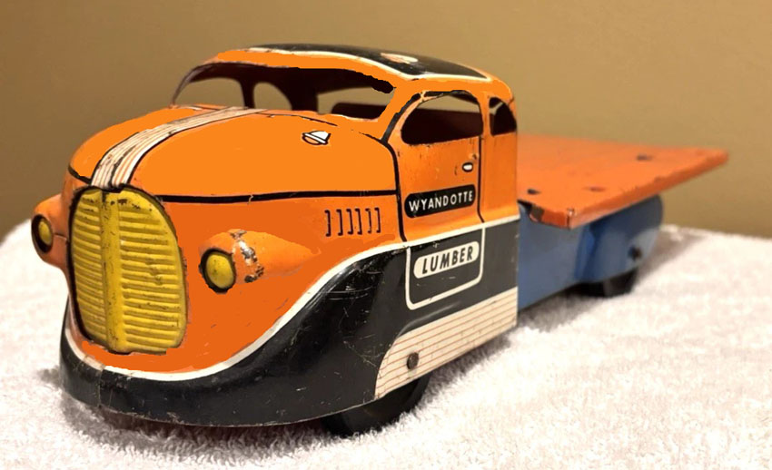 Manufacturer: Wyandotte Year: 1940's Category: Truck Material: Pressed Steel Size: 13" long
