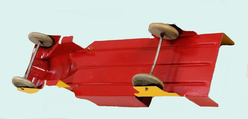 Wyandotte Truck with Cracker Jack Popcorn Box, Pressed Steel, 8.5″ long x 2-1/8″ wide, 1930’s