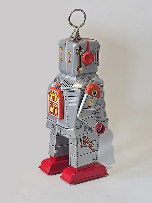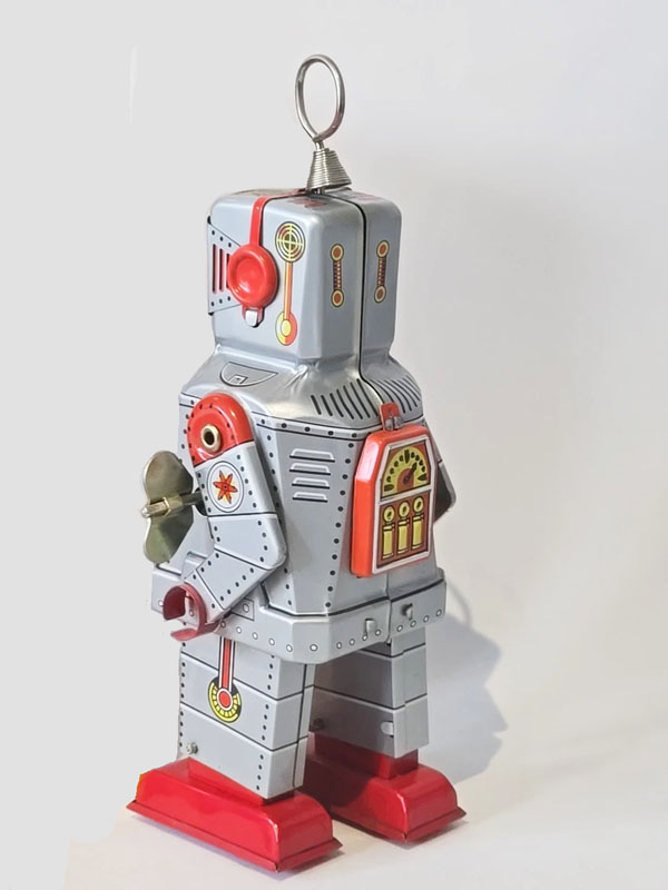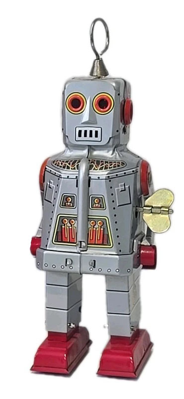 Manufacturer: Yoneya SY Category: Robot Material: Tin Powered: Clockwork Size: 7" tall